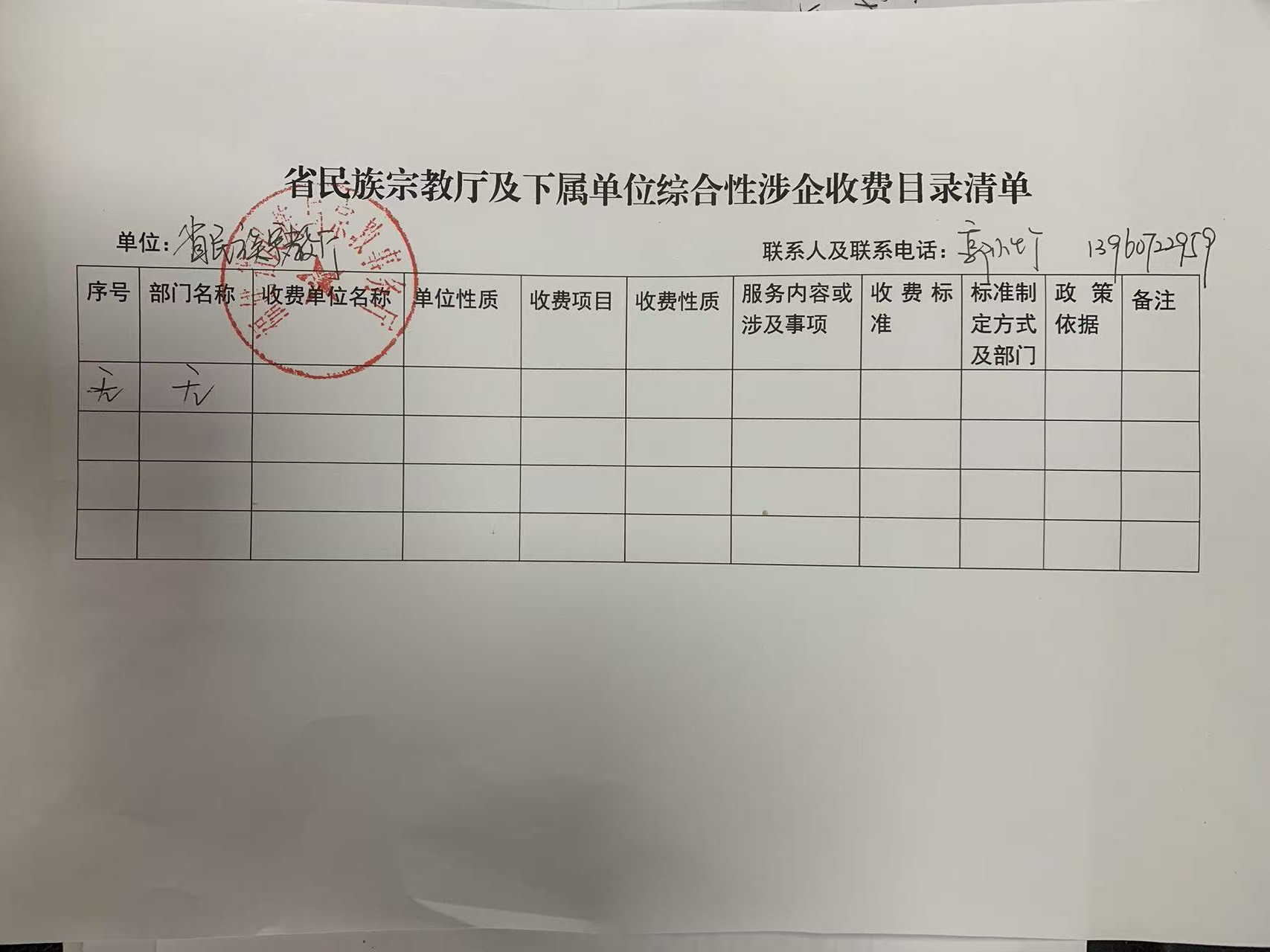 省民族宗教厅及下属单位综合性涉企收费目录清单