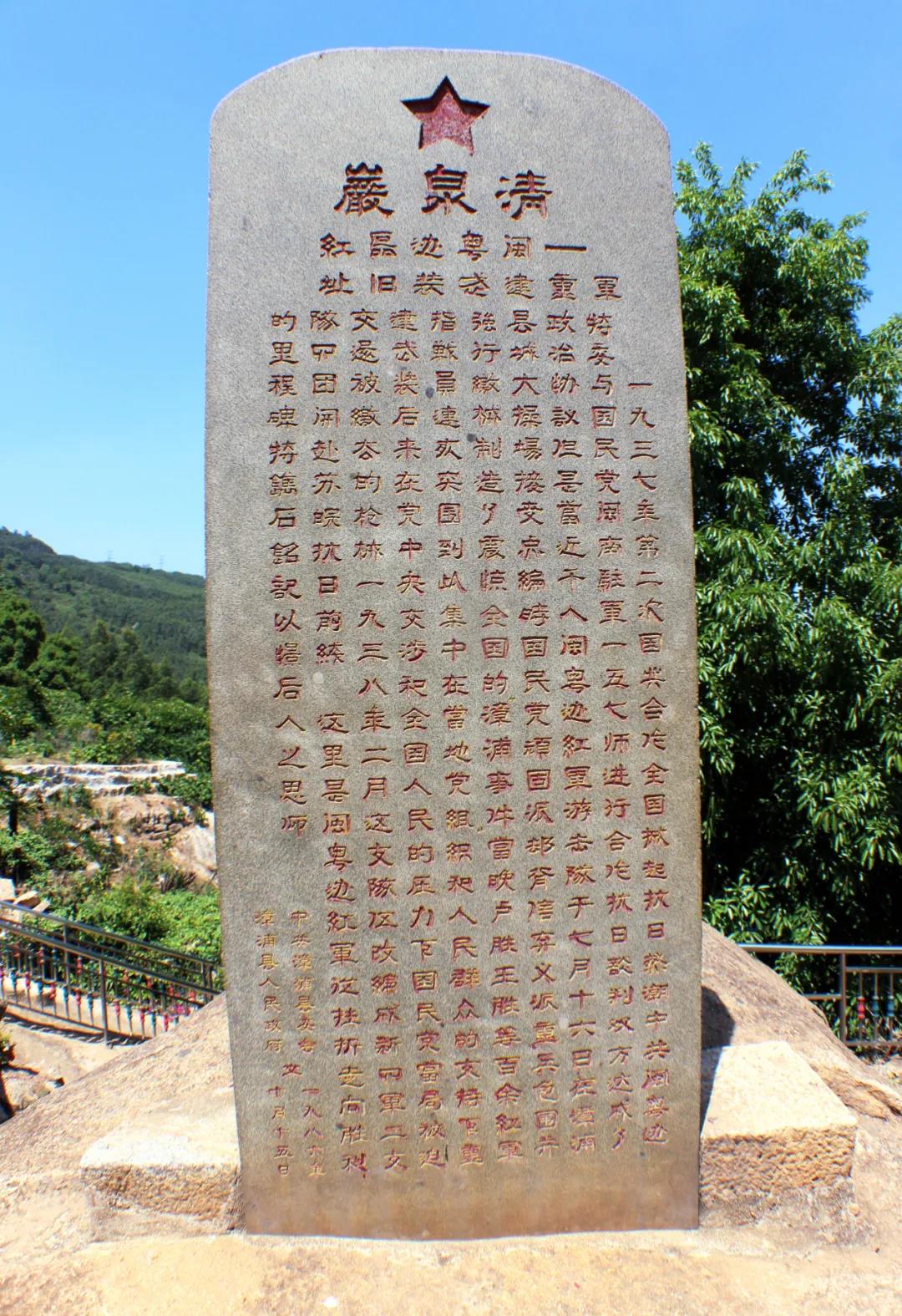 在烽火岁月里,清泉岩寺成为闽南红军革命斗争的后方据点和遇挫时的避难所,为红三团的浴火重生做出积极贡献。如今,漳浦县委、县政府在清泉岩寺前竖立“闽粤边区红军重整武装旧址”纪念碑,清泉岩寺,已成为漳浦闻名遐迩的红色革命教育基地。地方群众还将清泉岩上那些红军足迹所至之处亲切叫作“红军路”“红军桥”“红军洞”,以此铭记红三团在漳浦大地上英勇斗争的光辉历史。