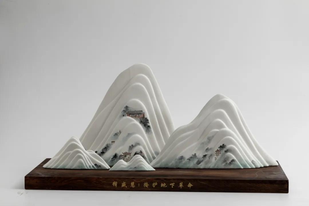 作品介绍:盛慧法师,福安人,不仅掩护张少廉等革命者于鼓山涌泉寺,使其免遭反动派毒手,还支持张少廉在鼓山脚下设立茶叶店作为掩护,从事地下革命活动。抗日战争爆发后,他积极赴南洋募资,资助抗日之用,并帮助抗日游击队出入鼓山袭击日本侵略军。作品以连绵群山为背景,结合绘画等技艺表现手法,展现盛慧法师利用涌泉寺、茶叶店掩护革命活动,发动捐款捐物的情景。