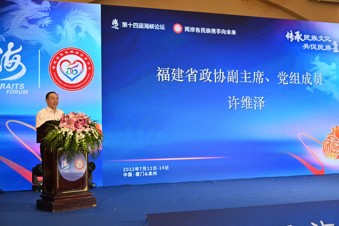 许维泽在致辞中表示,福建与台湾隔海相望,两地同根同源、血脉相亲、语言相通、习俗相近。海峡论坛作为两岸民间交流的大平台,使两岸同胞相聚在一起,话家常、寻根脉、谋发展、促融合。今年,论坛精心筹备了两岸各民族携手向未来系列活动,活动内涵丰富、形式多样,必将给两岸乡亲带来更多实实在在的获得感。他指出,当前福建正全面贯彻落实习近平总书记来闽考察的重要讲话重要指示精神,落实“四个更大”重要要求,扎实推进经济社会高质量发展,福建迎来前所未有的发展机遇。诚挚邀请台湾同胞积极参与新时代新福建建设,参与到两岸交流合作中来,坚信只要两岸同胞和衷共济、团结向前,一定可以在探索海峡两岸融合发展新路上迈出更大步伐。